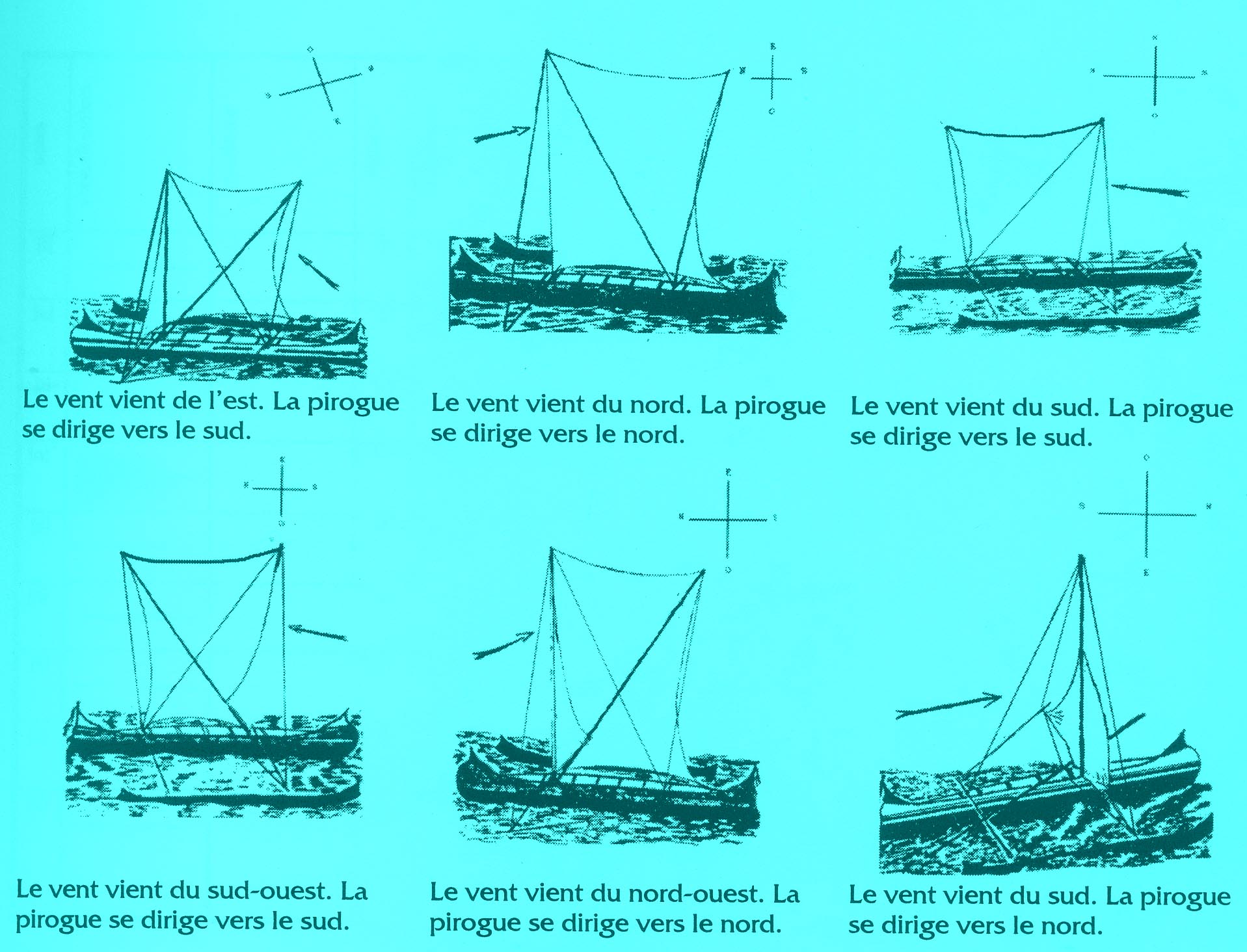 En général, il y a quatre façons principales de hisser la voile selon la direction du vent et de la pirogue: